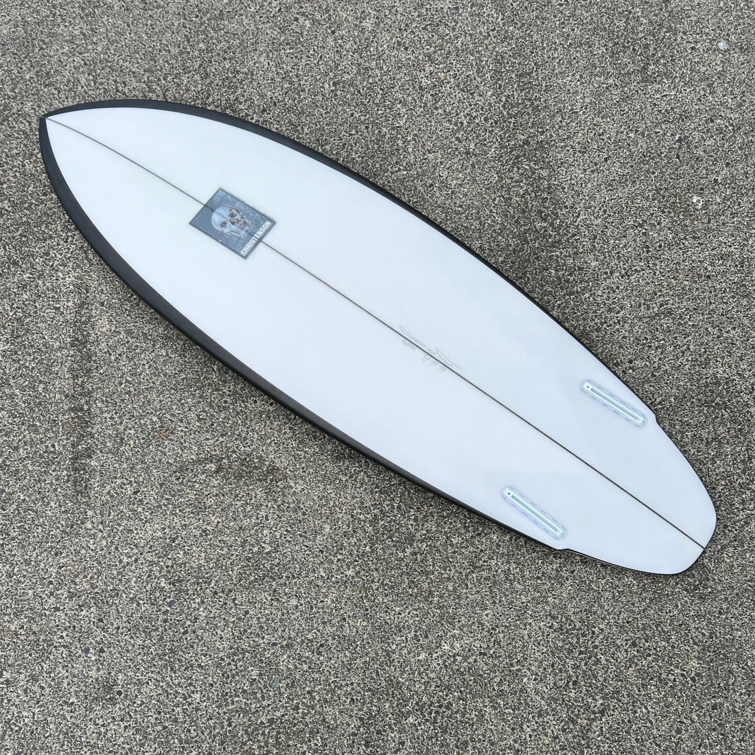 CHRISTENSON LANE SPLITTER 6'2 SWALLOW TAIL TWIN FIN BLACK RAIL SPRAY
