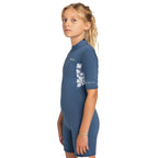 Featuring printed sleeves and side panels with a solid core, this girls' Swell Series 2mm short-sleeve springsuit is your cool-water surf essential complete with StretchFlight Eco neoprene, an easy back-zip entry, and a water-tight neck seal.