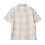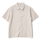 The 91 Oxford Shirt in Tan and White is an oversized box-fit traditional short sleeve shirt.